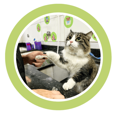 Corte de unhas realizado com técnica e segurança, prevenindo desconfortos, lesões e ajudando na postura e na saúde das patas do pet.