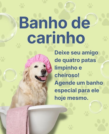 Tosa voltada à higiene e ao bem-estar do pet, cuidando das áreas íntimas, patas e pelagem para garantir mais conforto, saúde e limpeza no dia a dia.